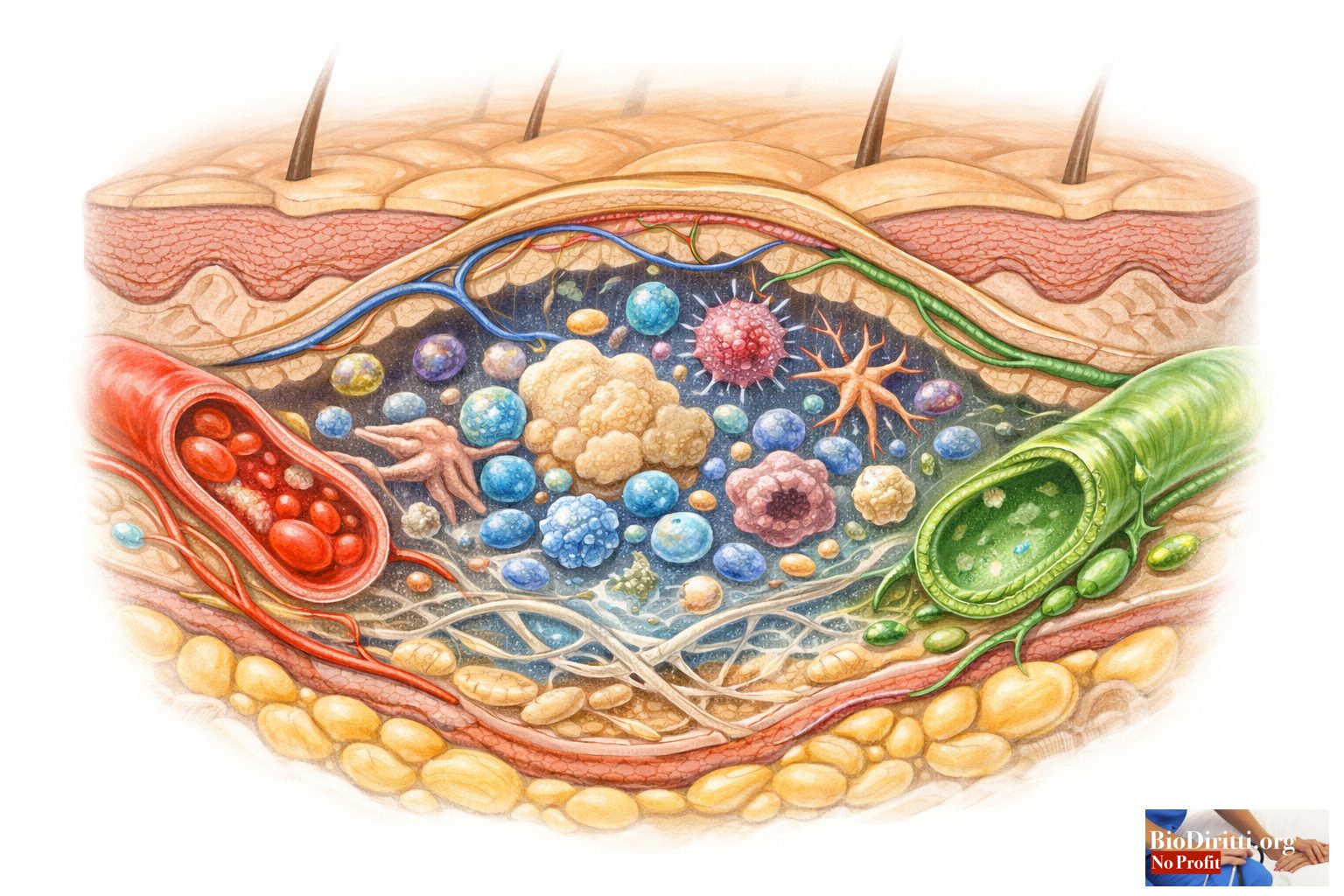 Scoperto nel 2018, l’interstizio è una rete di canali pieni di fluido che attraversa tutto il corpo. Non è un vuoto: è un cuscino protettivo, un sistema di comunicazione, un ammortizzatore progettato per prevenire il danno prima ancora che accada.
