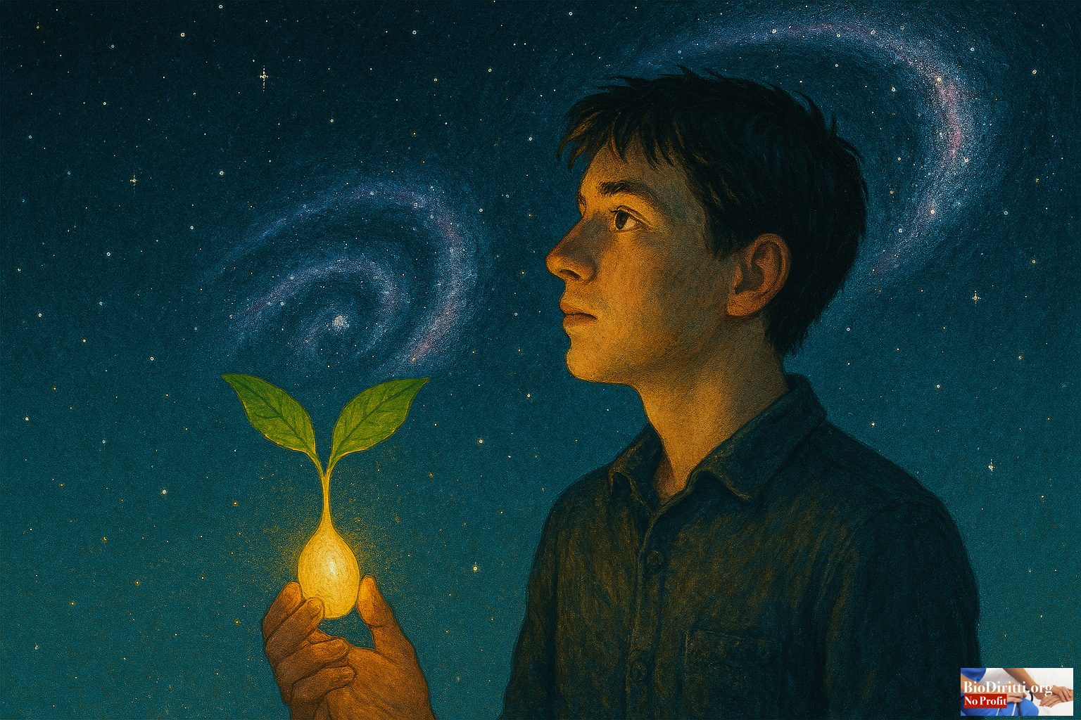La vita non è solo chimica. È organizzazione, informazione, relazione, esperienza. Dalla cellula al pensiero umano, ogni forma vivente è un sistema che resiste al disordine, che trasforma energia in significato, che genera bellezza e interconnessione. La vita non è solo possibile. È profondamente sentita. Un seme è una delle strutture più complesse e perfette che esistano. Contiene informazione, potenziale, struttura, energia. Eppure, nessun laboratorio è mai riuscito a crearne uno da zero. Possiamo copiarlo, modificarlo, sequenziarlo, ma non generarlo ex novo. Questo ci ricorda che la vita non è replicabile in laboratorio: è un dono, non un prodotto. Un seme che germoglia e una galassia che ruota seguono geometrie simili. La spirale, la simmetria, la distribuzione dell’energia: tutto sembra rispondere a un principio estetico e funzionale. Dal seme alle galassie la stessa armonia. Quando un essere umano rimane senza ossigeno per alcuni minuti, muore. Reintrodurre ossigeno non basta a riportarlo in vita. Perché la vita è un equilibrio dinamico, una sinfonia di processi che, una volta interrotti, non si riaccendono. Non basta l’energia: serve la vita fatta di ordine, struttura, coerenza.