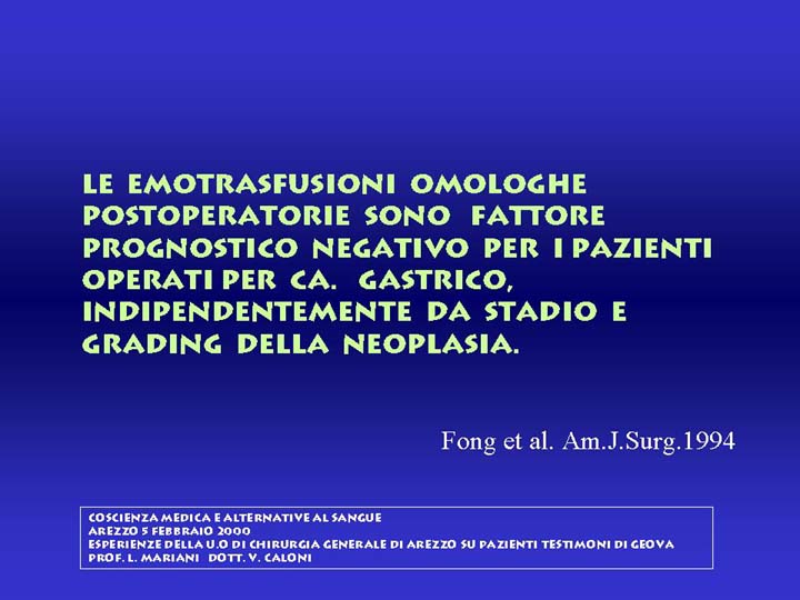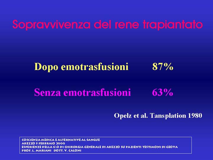 Tale necessità , che ha portato allo sviluppo del concetto di “buon uso del sangue in chirurgia” , è nata per le esigenze di risparmiare il sangue di banca negli interventi cardiochirurgici , per poi estendersi a tutte le specialità in funzione principalmente del tentativo di riduzione delle patologie trasmissibili per via ematica ( rischio A.I.D.S.). Ma negli anni ‘80 , attraverso l’esperienza maturata nei trapianti, con la dimostrazione che il pretrattamento con emotrasfusioni del ricevente migliora la sopravvivenza dell’organo trapiantato ( 87% contro 63% nel trapianto di rene – Opelz et al., 1980 Transplantation ), si dimostrò che le emotrasfusioni avevano un potere di depressione sul sistema immunitario; da allora moltissimi studi hanno confermato la maggior incidenza di complicanze soprattutto infettive post-operatorie dopo emotrasfusione e la minore sopravvivenza a distanza dei pazienti trasfusi operati per neoplasie maligne. Molti di questi studi sono tuttavia criticabili, per la mancata randomizzazione fra i gruppi confrontati , con la inevitabile disomogeneità a danno dei pazienti trasfusi; recenti casistiche, tuttavia, confermano che la trasfusione è un fattore predittivo negativo per la prognosi , indipendentemente da estensione, stadio e grading della neoplasia ( Fong, 1994; Am. J. Surg. ). Negli armi ‘90 , poi, la accresciuta sensibilità ai problemi dei costi ha contribuito alla necessità di istituire più razionali indicazioni all’uso delle trasfusioni e di porre una maggior attenzione alle varie metodiche di risparmio del sangue in chirurgia.