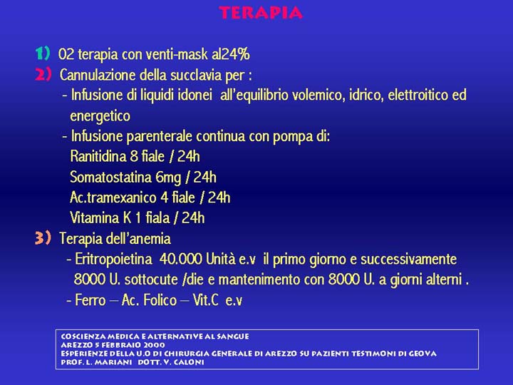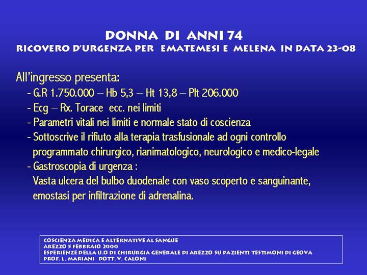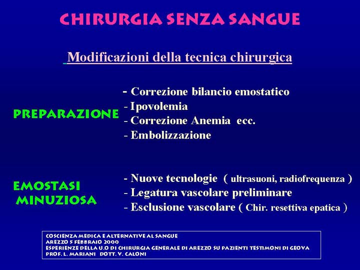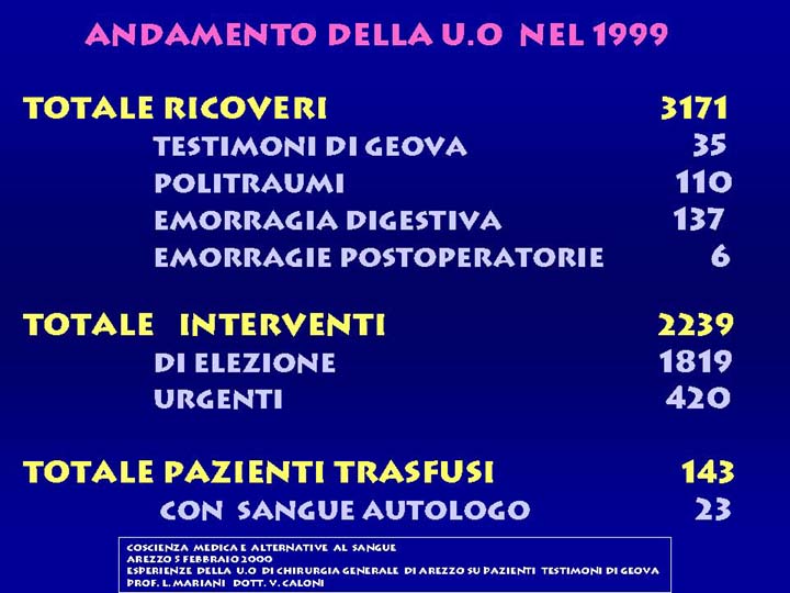 “ESPERIENZE DELLA U.O. DI CHIRURGIA GENERALE DI AREZZO SU PAZIENTI TESTIMONI DI GEOVA”.