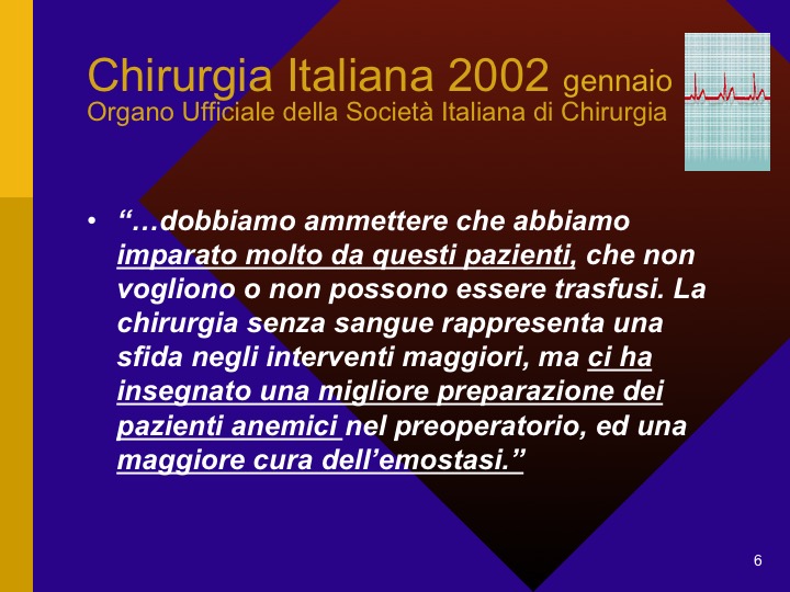 Pioniere dell’Etica Scientifica della Medicina e Chirurgia Senza Sangue