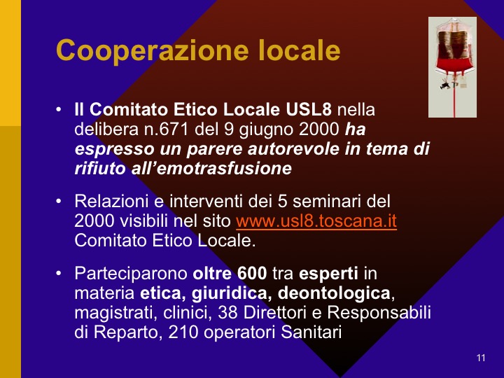 Già Coordinatore per 27 anni del Comitato Assistenza Sanitaria Testimoni di Geova