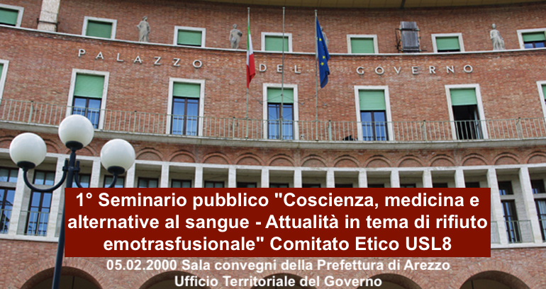 Uno speciale ringraziamento è dovuto al Comitato Etico Locale USL8 di Arezzo che in piena collaborazione con il locale Comitato di Assistenza Sanitaria e all’Hospital Information Service della sede Mondiale dei Testimoni di Geova per la diffusione di tutte le informazioni Scientifiche ed Etiche Internazionali utili per abbattere anche qui in Italia barriere e pregiudizi Culturali Secolari. Un grazie al sig. Giuseppe Baldini e al Suo Staff per la videoregistrazione e cura acustica dell’evento.