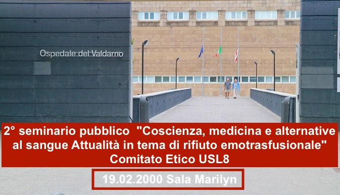 Siamo lieti di presentare il secondo dei 5 seminari PUBBLICI tenuti nell’anno 2000, nel campo della Sanità in piena collaborazione con il Comitato Etico Locale USL8, Direttore del Dipartimento di Medicina Legale dell’Università di Siena, della Direzione Generale e Sanitaria della USL8, di tutti i Direttori di Reparto e di Presidio Ospedaliero. Possiamo definirli pietre miliari di quello che, molti anni dopo, le linee guida Unione Europea da marzo 2017 sostiene l‘Organizzazione Mondiale della Sanità che promuove dal 2010 il programma Patient Blood Management (PBM link PDF) con risoluzione vincolante per gli stati membri (WHA64.12. 21.05.2010) come indicata anche dal Centro Nazionale Sangue PBM (link Patient Blood Management – Gestione Sangue del Paziente).–