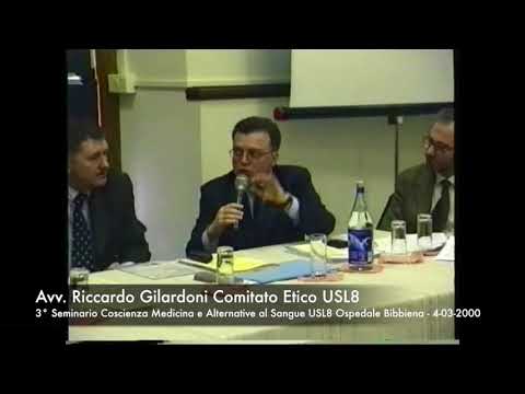 Abbiamo estratto alcuni video dell’Avv. Riccardo Gilardoni, PER DARGLI ONORE come STORICO RELATORE ED ORGANIZZATORE dei Seminari USL8. La Storia dei Biodiritti la trovate nella sezione seminari, con centinaia di ore di video e relazioni. I Seminari formativi USL8 di Arezzo dal 1996 hanno fatto la storia in Italia del rifiuto di cure salvavita, come quelle delle emotrasfusioni dei Testimoni di Geova che coinvolge anche il diritto di professare la propria religione. Un sentito grazie alla coscienza etica, giuridica e deontologica di questi storici organizzatori e relatori che hanno dato il via al progressivo riconoscimento dei BioDiritti avvalorati dalla BioEtica più attuale come le DAT (Dichiarazione Anticipata di Trattamento) regolamentata dopo il lungo percorso parlamentare del BioTestamento. Purtroppo le leggi, “camminano sulle gambe degli uomini”; possono calpestare i BioDiritti quando non si risolvono conflitti, spesso a danno del più debole: il malato. Tutti vogliamo Vivere la malattia con dignità! È un cammino ancora lungo per Educare le coscienze. L’ Organizzazione Mondiale della Sanità promuoverà il Buon Uso del sangue solo dal 2010 con il Patient Blood Management (Link PBM), risoluzione vincolante per gli stati membri (WHA64.12. 21.05.2010) indicata dal 2012 anche dal Centro Nazionale Sangue (Link)