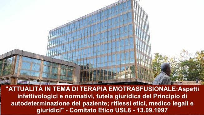 Uno speciale ringraziamento è dovuto al Comitato Etico Locale USL8 di Arezzo che in piena collaborazione con il locale Comitato di Assistenza Sanitaria e all’Hospital Information Service della sede Mondiale dei Testimoni di Geova per la diffusione di tutte le informazioni Scientifiche ed Etiche Internazionali utili per abbattere anche qui in Italia barriere e pregiudizi Culturali Secolari. Hanno posto la base per i successivi seminari fatti in collaborazione con il Comitato Etico USL8 di Arezzo; costituito proprio nel 1996 su istanza del Comitato di Assistenza Sanitaria dei Testimoni di Geova. Uno dei primi Comitati Etici USL operativi e costituiti in Italia. A distanza di anni comprendiamo che proprio ad Arezzo si è dato il via alle attuali leggi per i diritti del rifiuto di terapie salvavita o interruzioni di accanimenti terapeutici. State per osservare la storia dei BioDiritti in Italia. Un grazie al sig. Giuseppe Baldini e al Suo Staff per la videoregistrazione e cura acustica degli eventi.