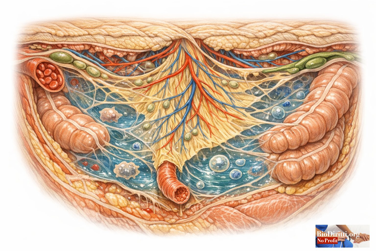 Per secoli considerato un insieme di pieghe disordinate, oggi il mesentere è riconosciuto come un organo unico e continuo. Un nastro vivente che sostiene l’intestino, lo nutre, lo difende.